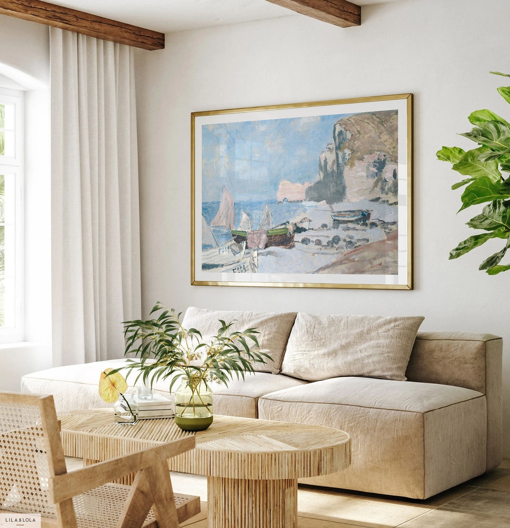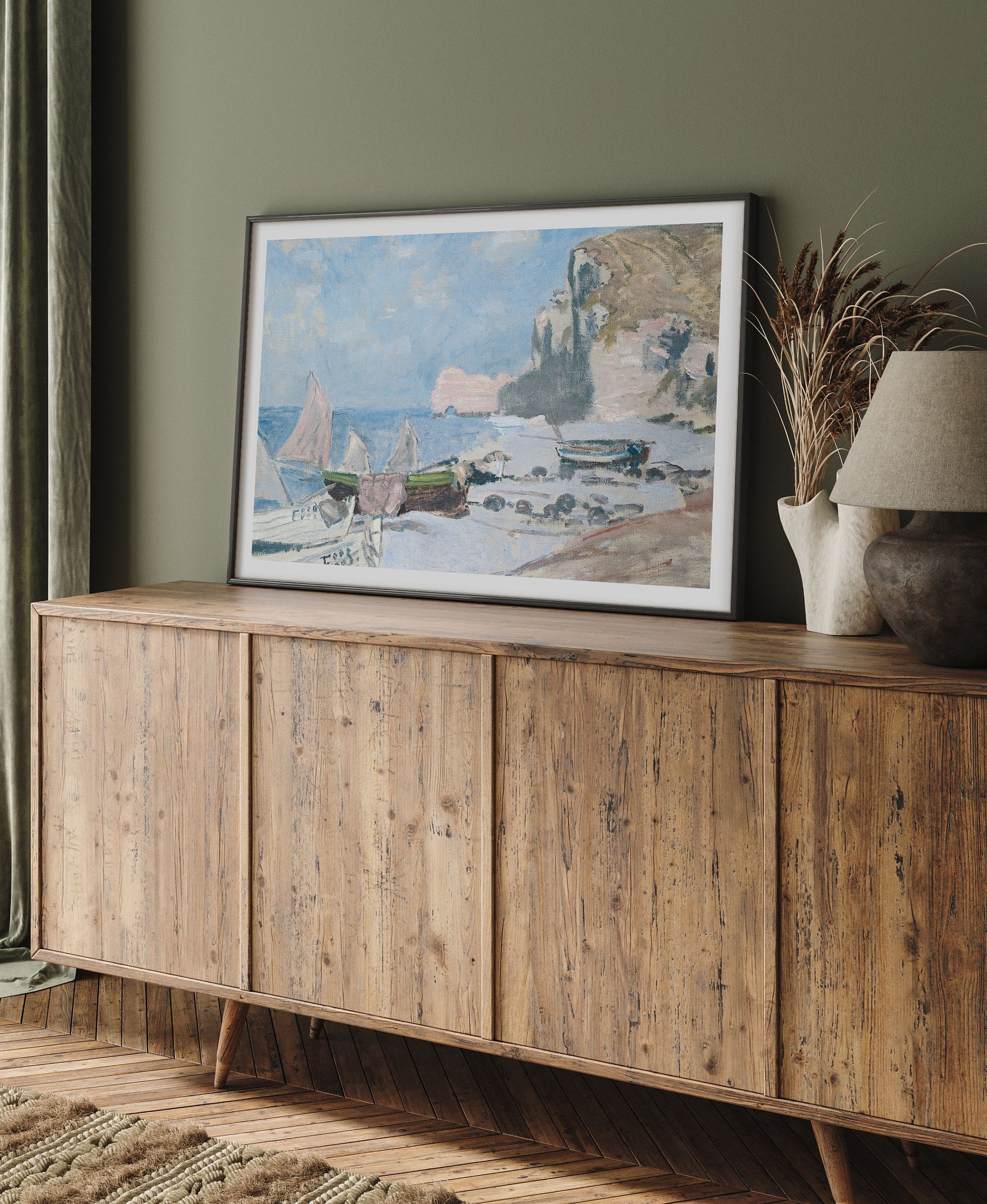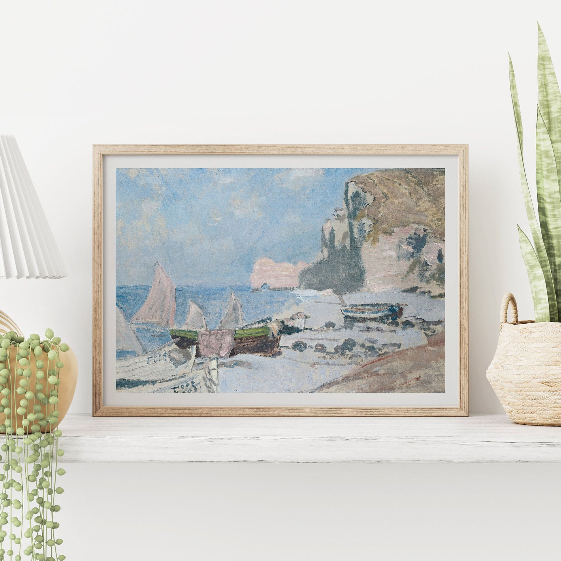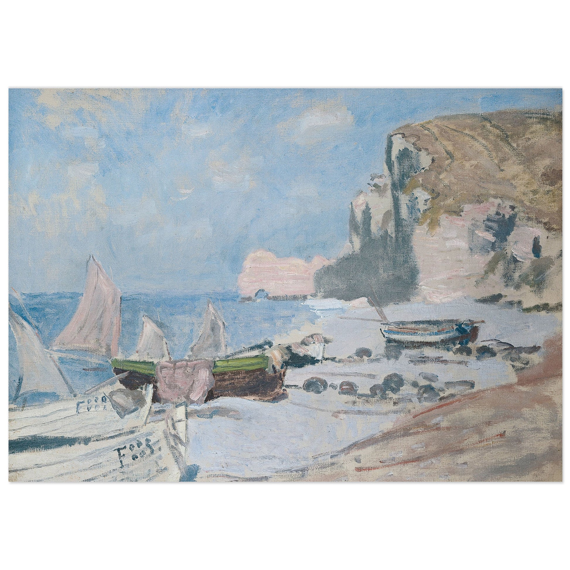 High definition print of a painting representing boats at Étretat by Claude Monet