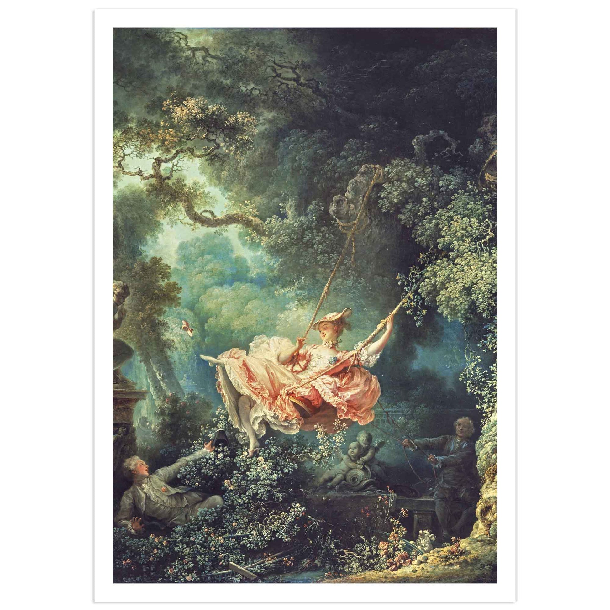 A high definition print reproduction of "The Happy Accidents of the Swing", a painting by Jean-Honoré Fragonard