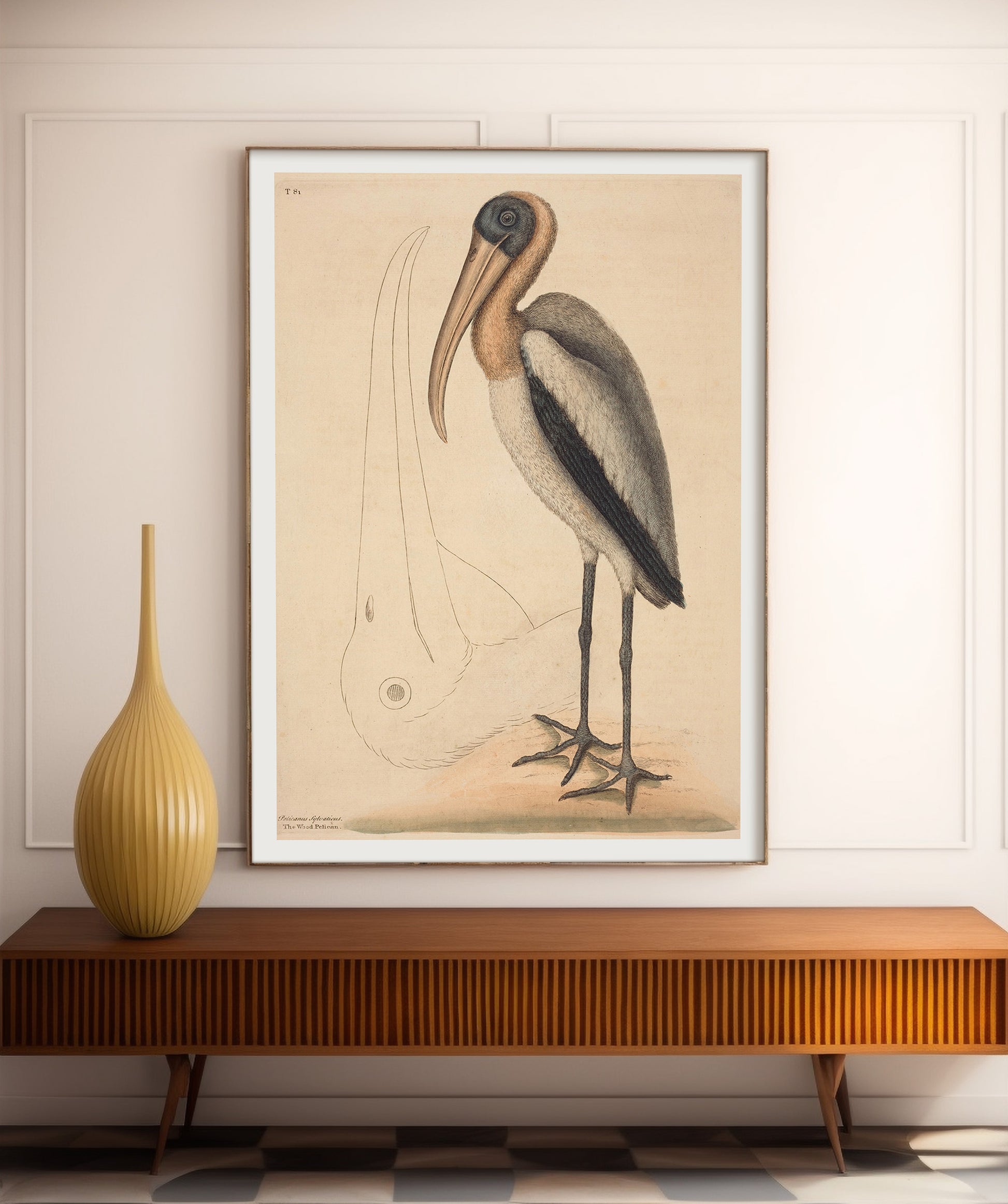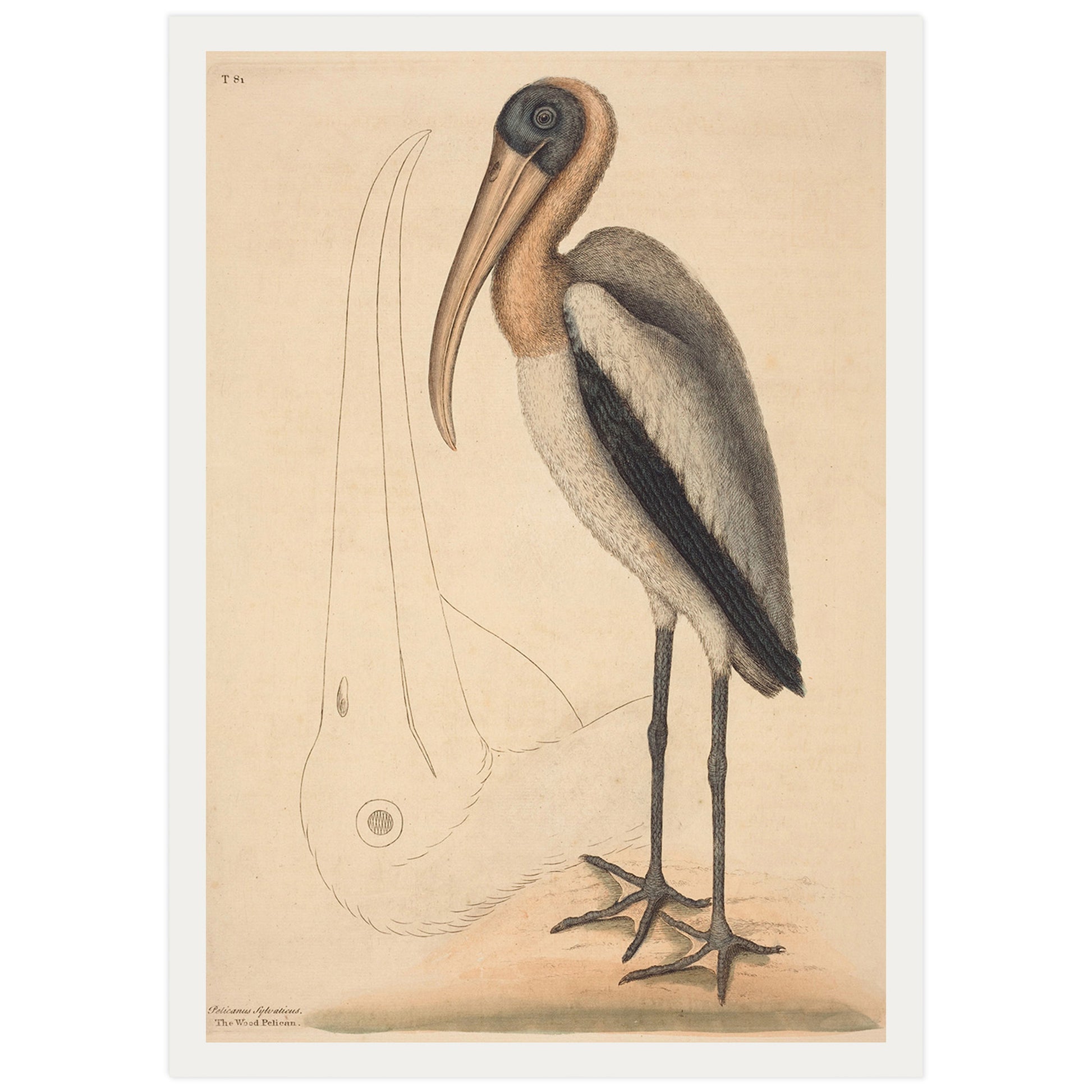 High definition print of an 18th century and-colored engraving by british artist and naturalist Mark Catesby.