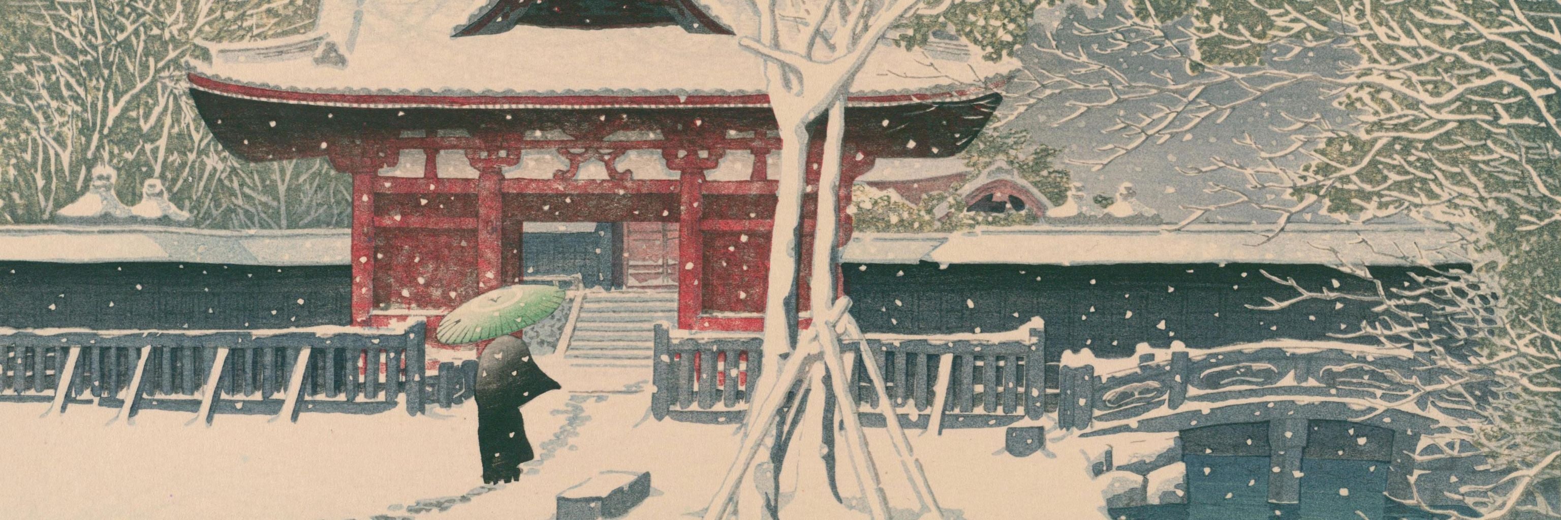 Affiche d'art japonaise – Neige au temple Zōjōji par Kawase Hasui