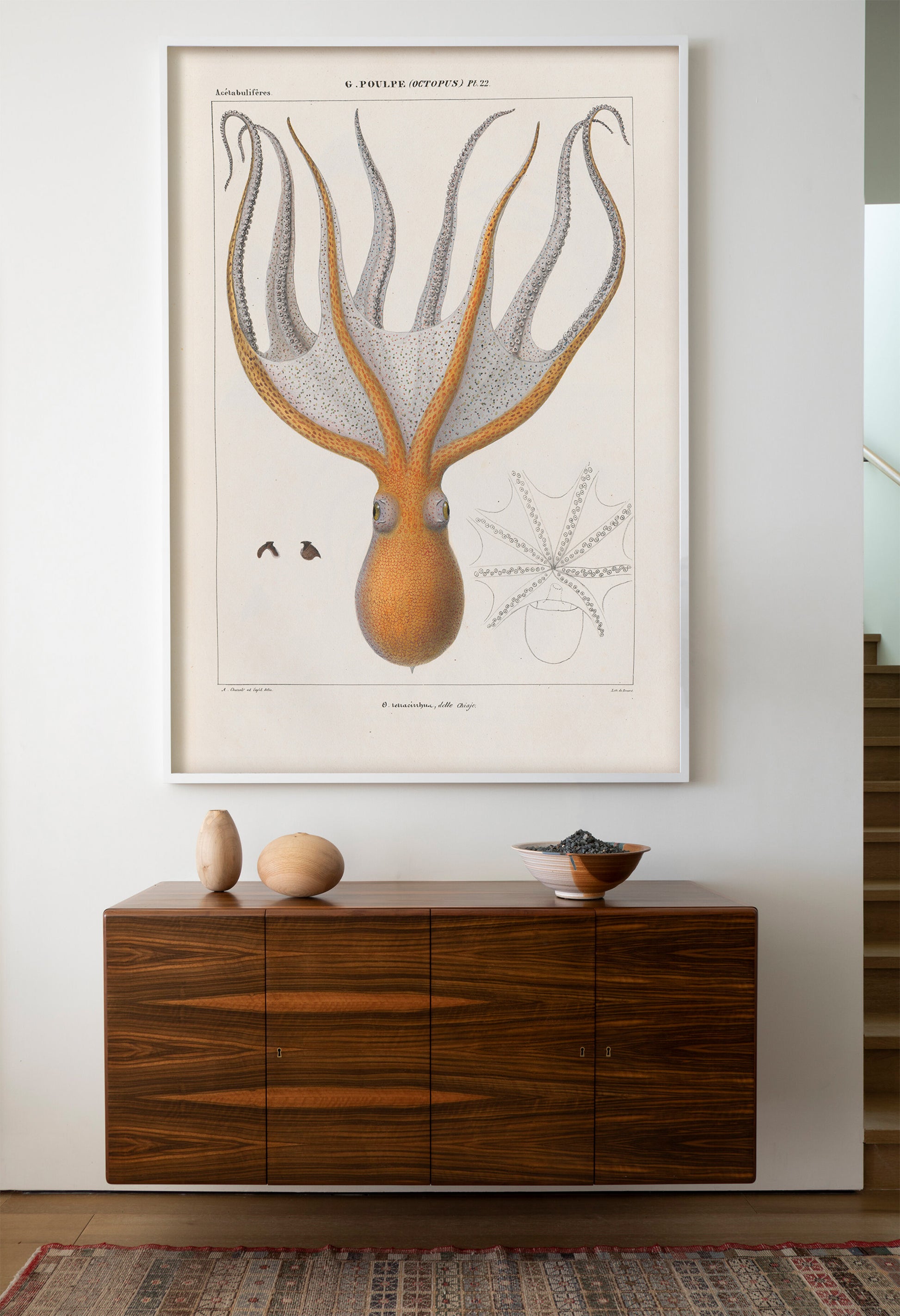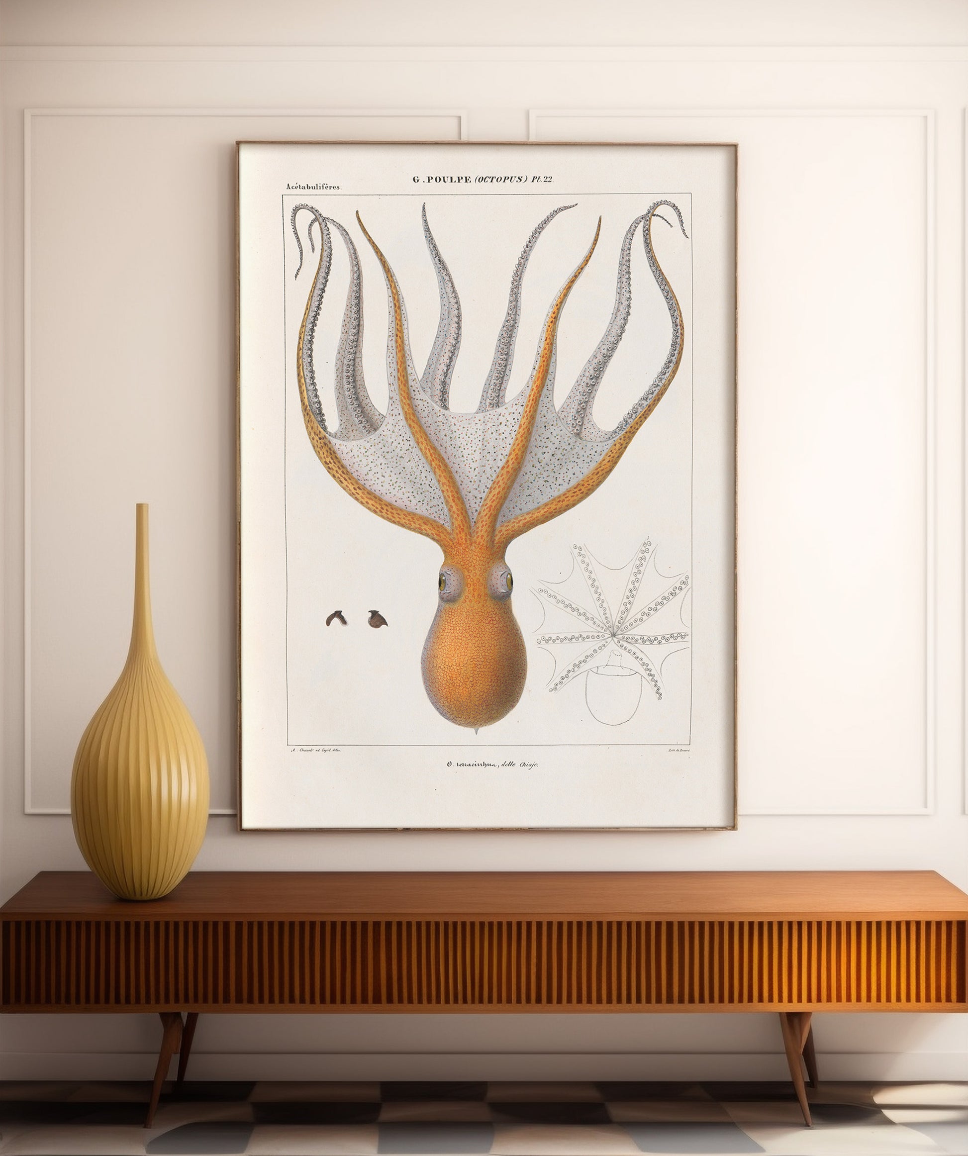 "Le poulpe" - affiche vintage haute définition de Poulpe tirée d'un livre français publié en 1835 : "Histoire naturelle générale et particulière des céphalopodes acétabulifères vivants" (Histoire naturelle générale et particulière des céphalopodes acétabuliens vivants).