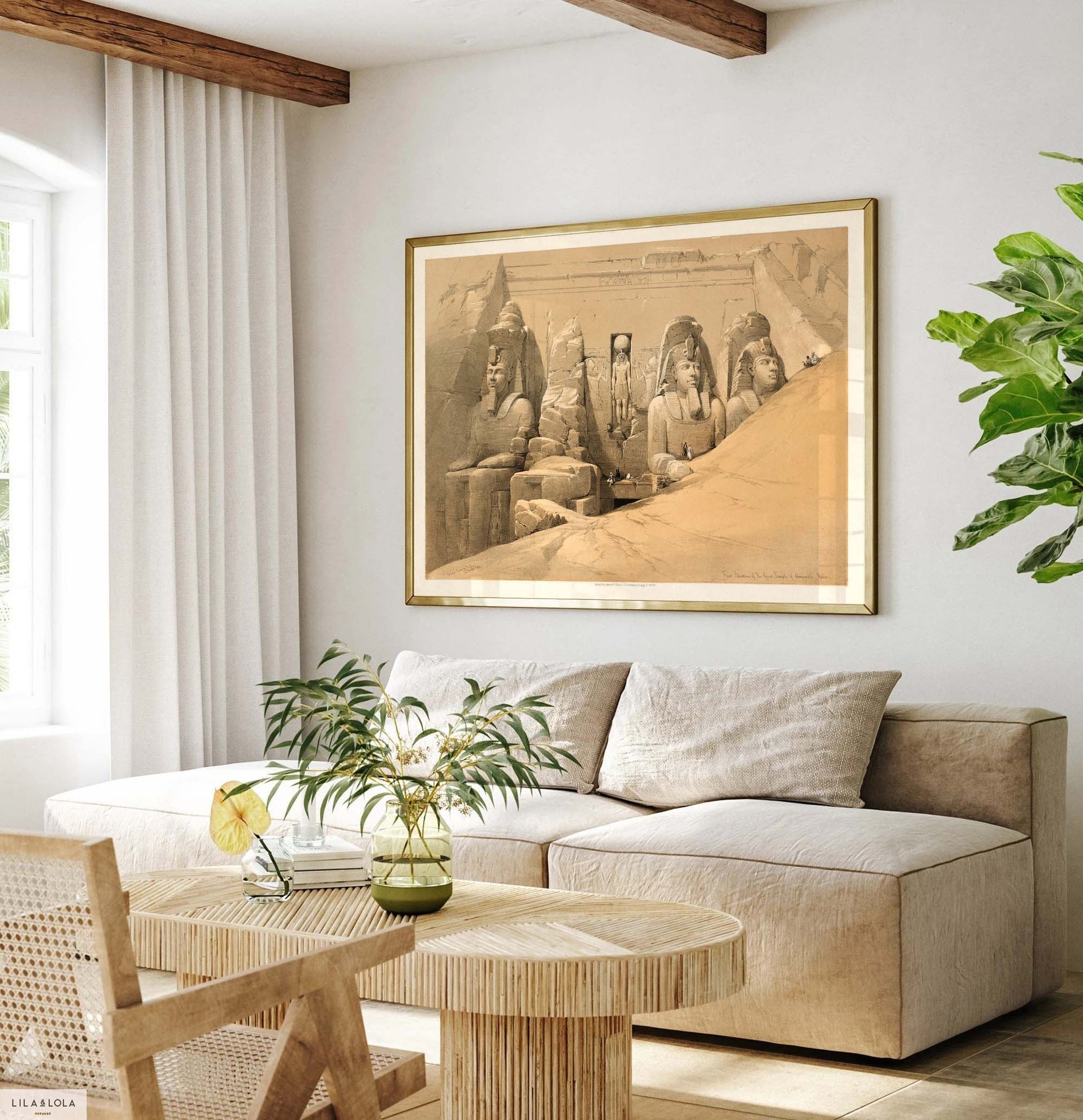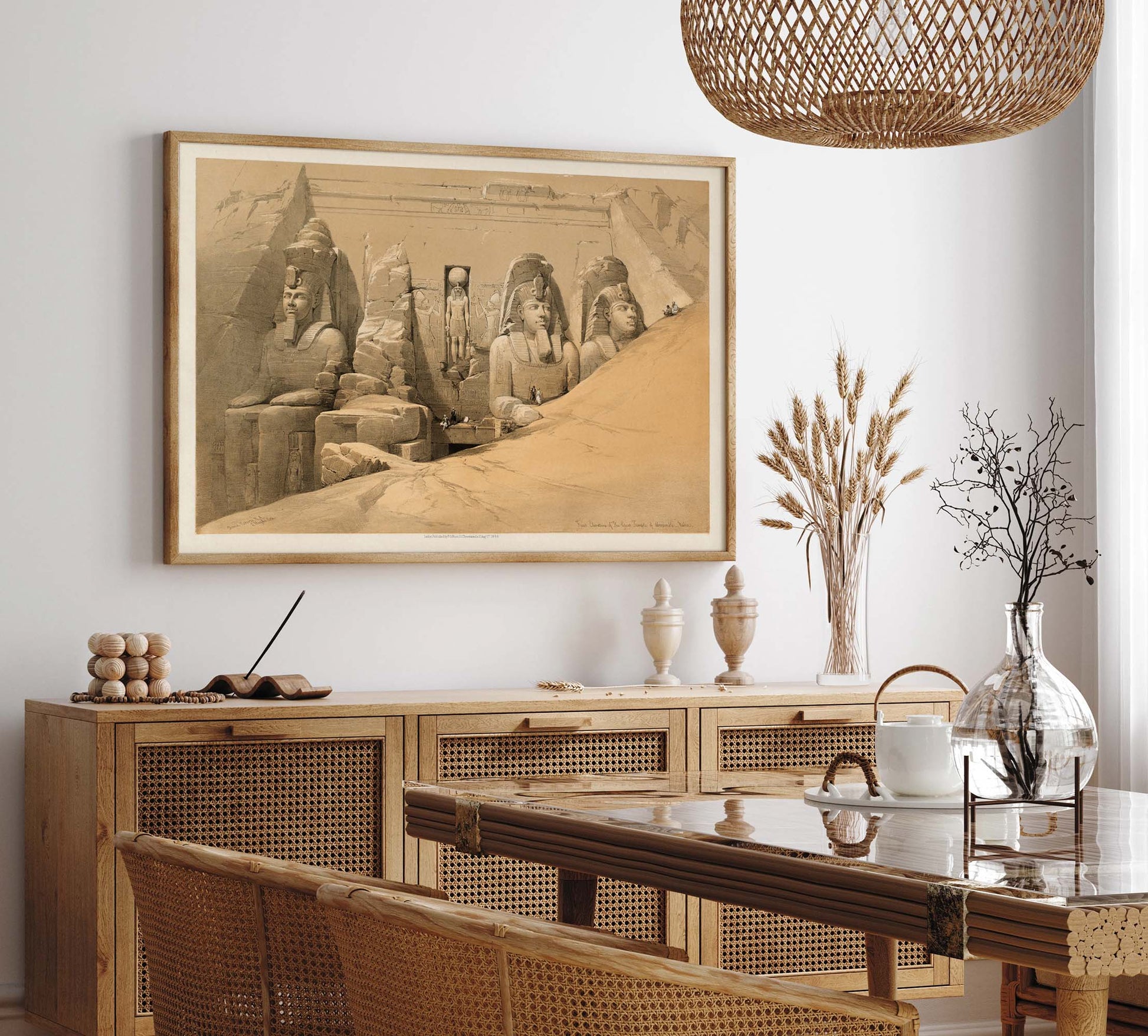 Grand Temple d'Abou Simbel, reproduction lithographie couleur sur papier de musée.
