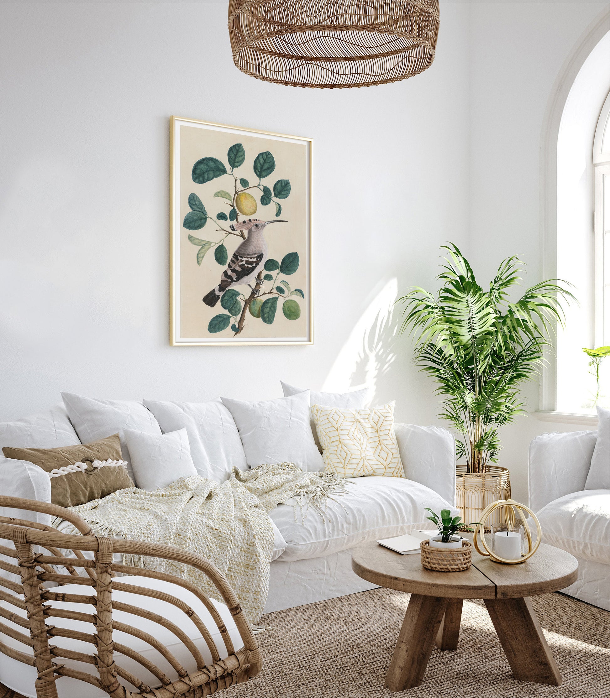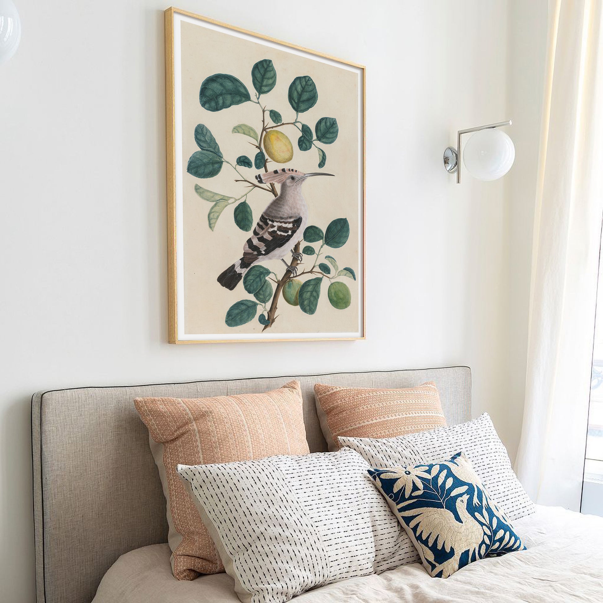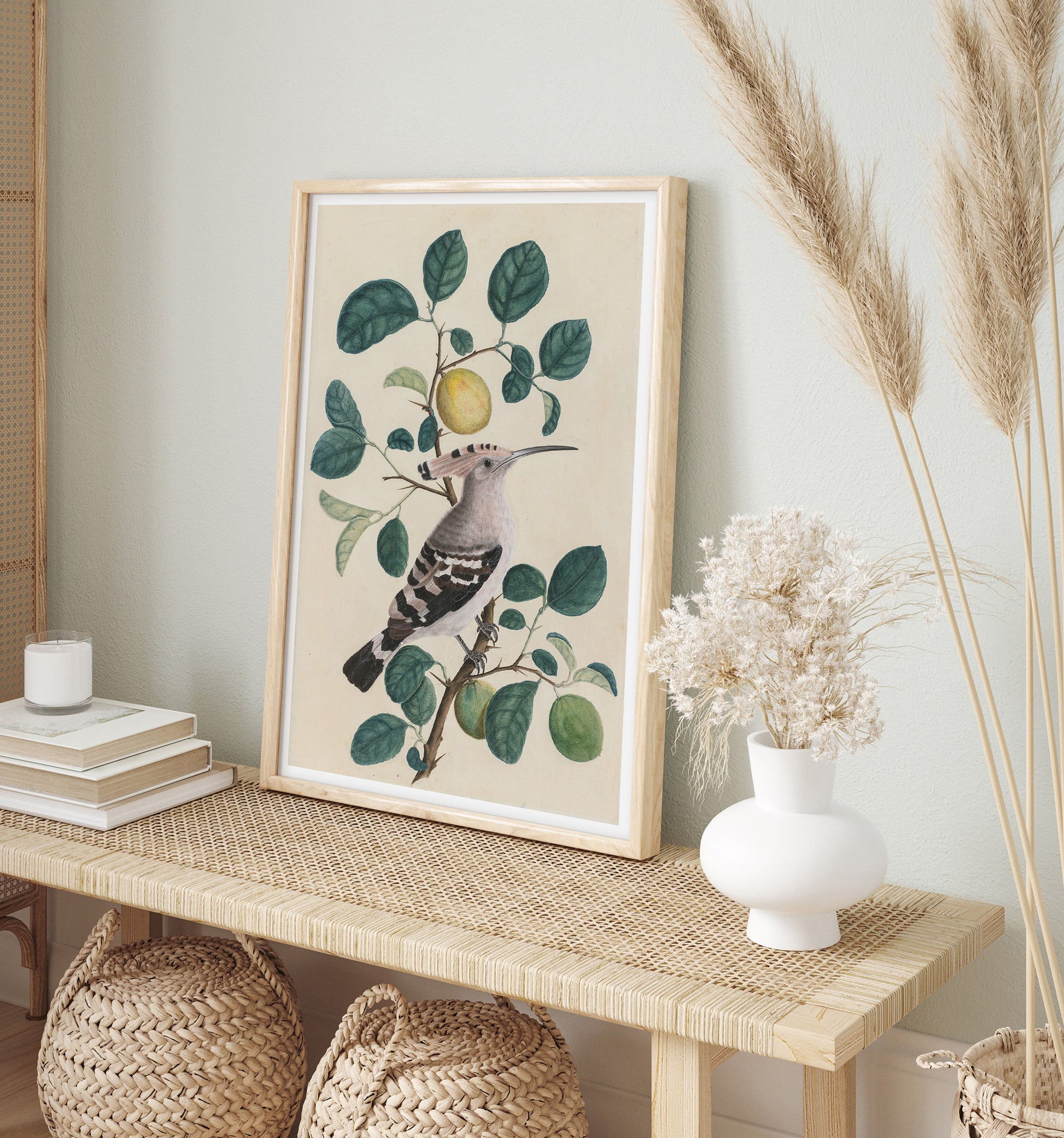 Huppe fasciée sur une branche d'arbre à agrumes, ch. 1800. Inde