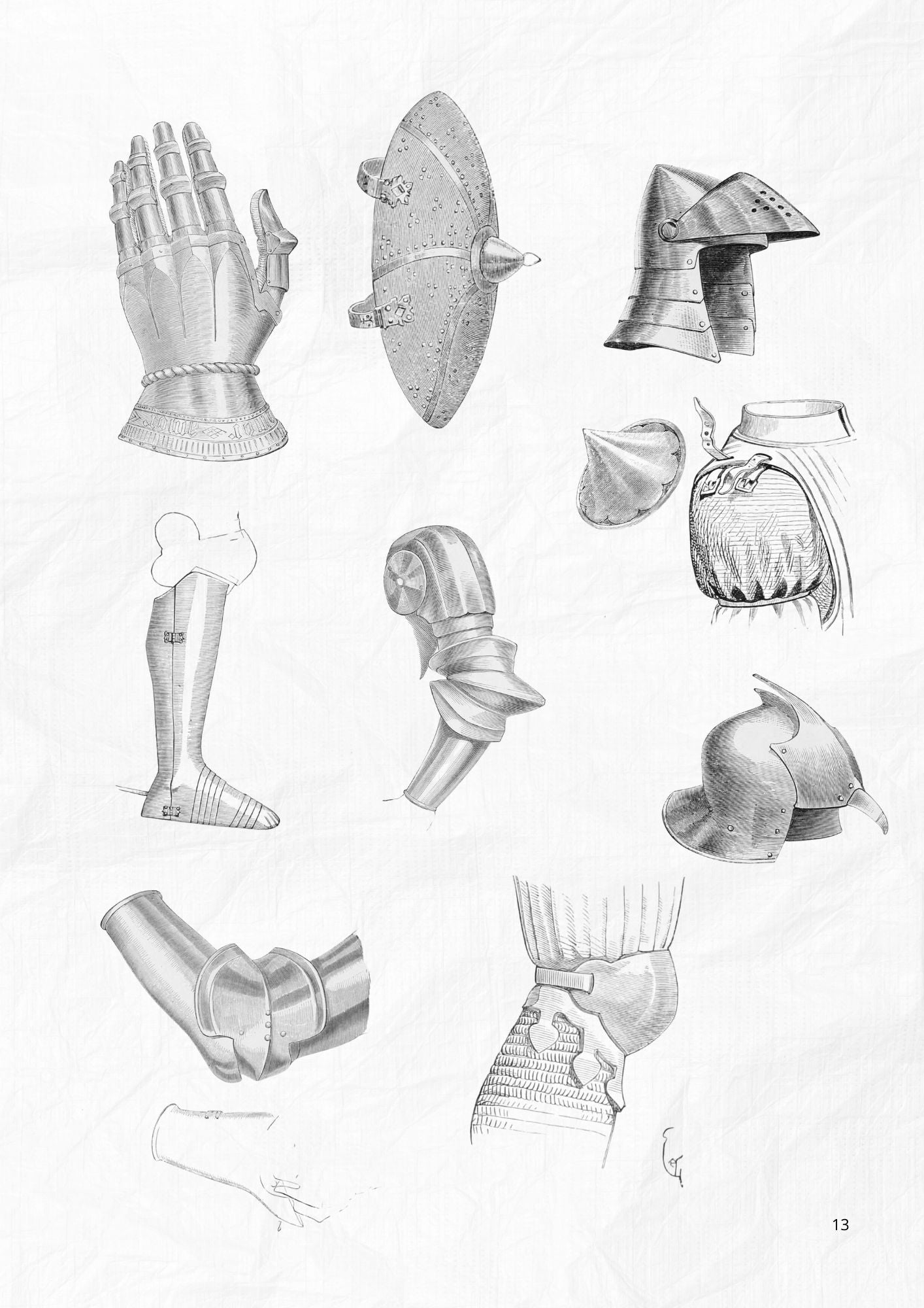 Vous pouvez feuilleter ce livre pour le plaisir ou l'utiliser comme support de travail d'artiste. J'ai réuni un ensemble unique d'images de référence sur le vaste monde de la chevalerie. À travers des gravures, des dessins, des peintures, de la poésie et des enluminures médiévales, vous aurez à portée de main l'une des plus vastes bases documentaires sur la figure du chevalier.