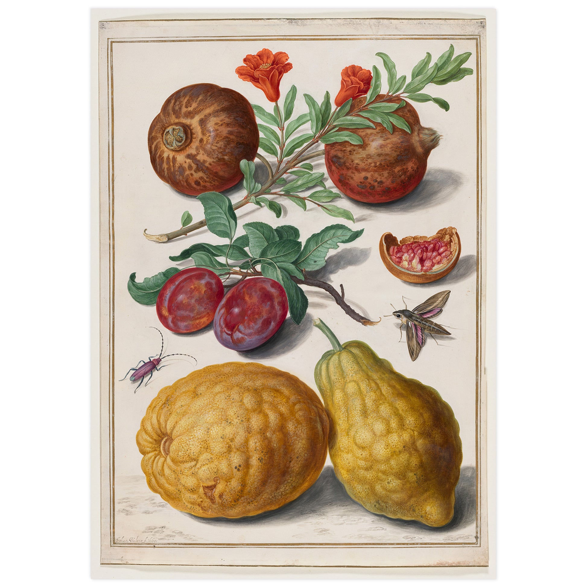Grenade, prune, cédrat, troène sphynx et coléoptère, Johann Walter