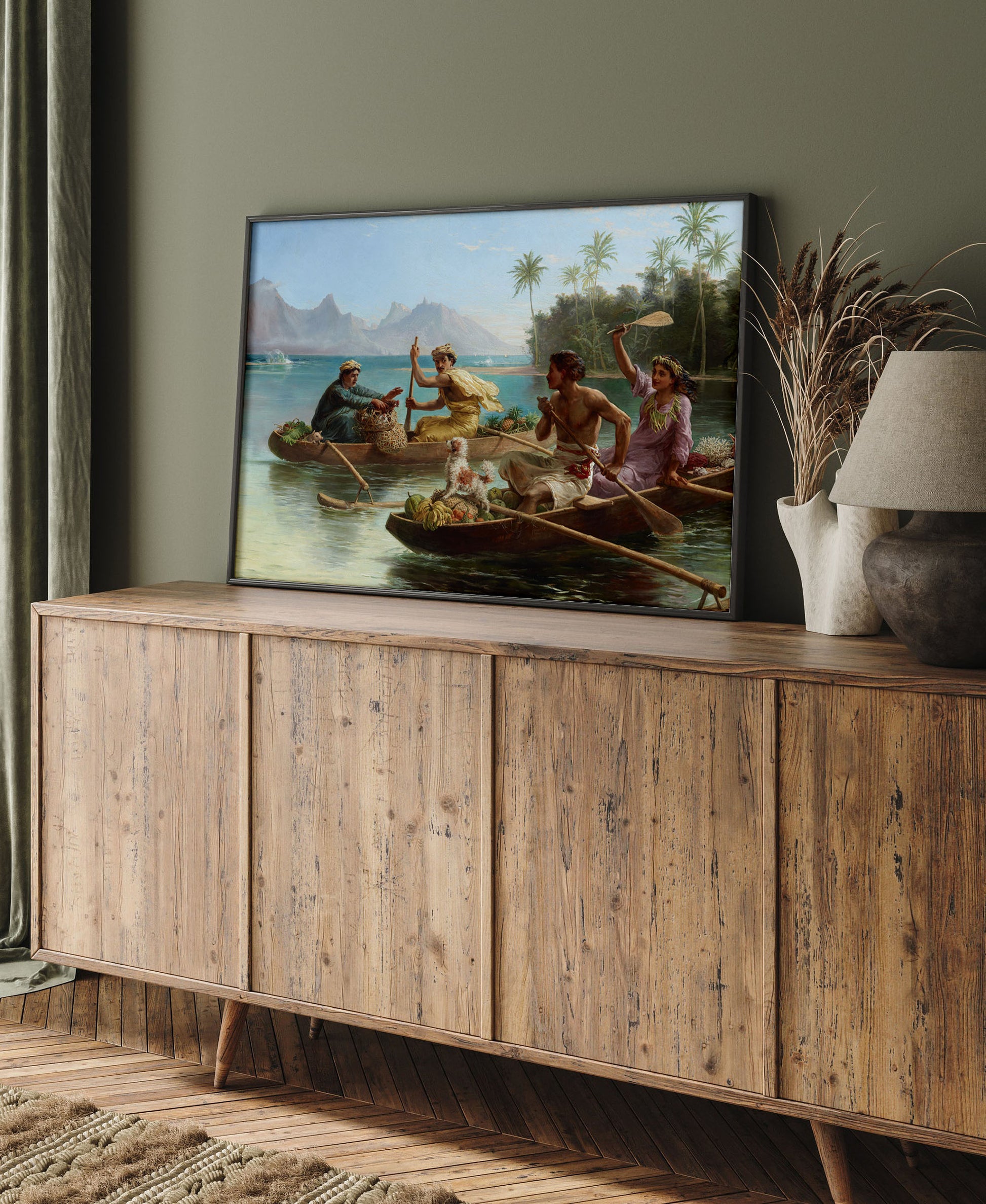 Impression haute définition d'un tableau représentant une course au marché à Tahiti, Nicolas Chevalier