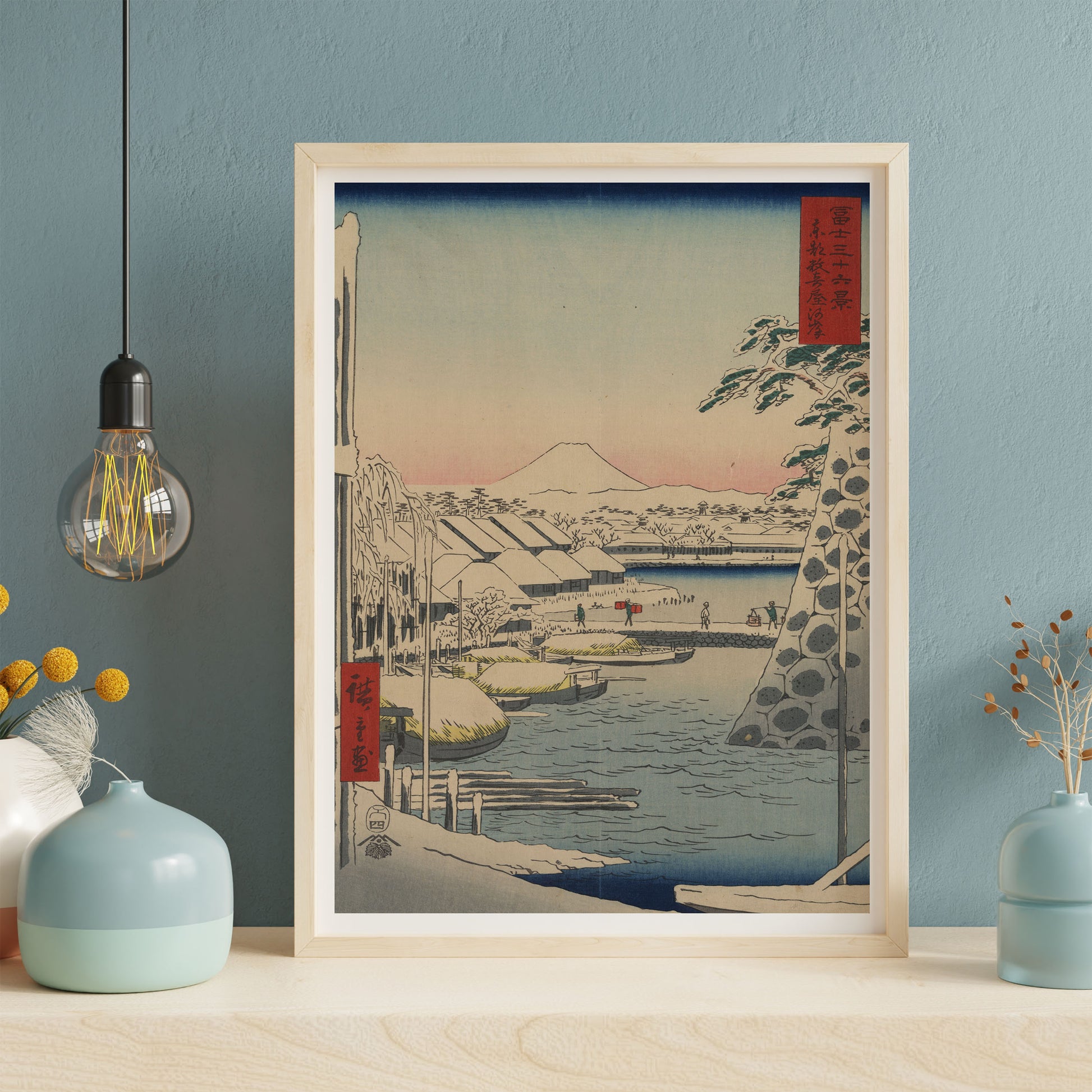 Cette reproduction de qualité musée restitue fidèlement les tons doux, les détails délicats et la profondeur atmosphérique de l’estampe originale ukiyo-e.
