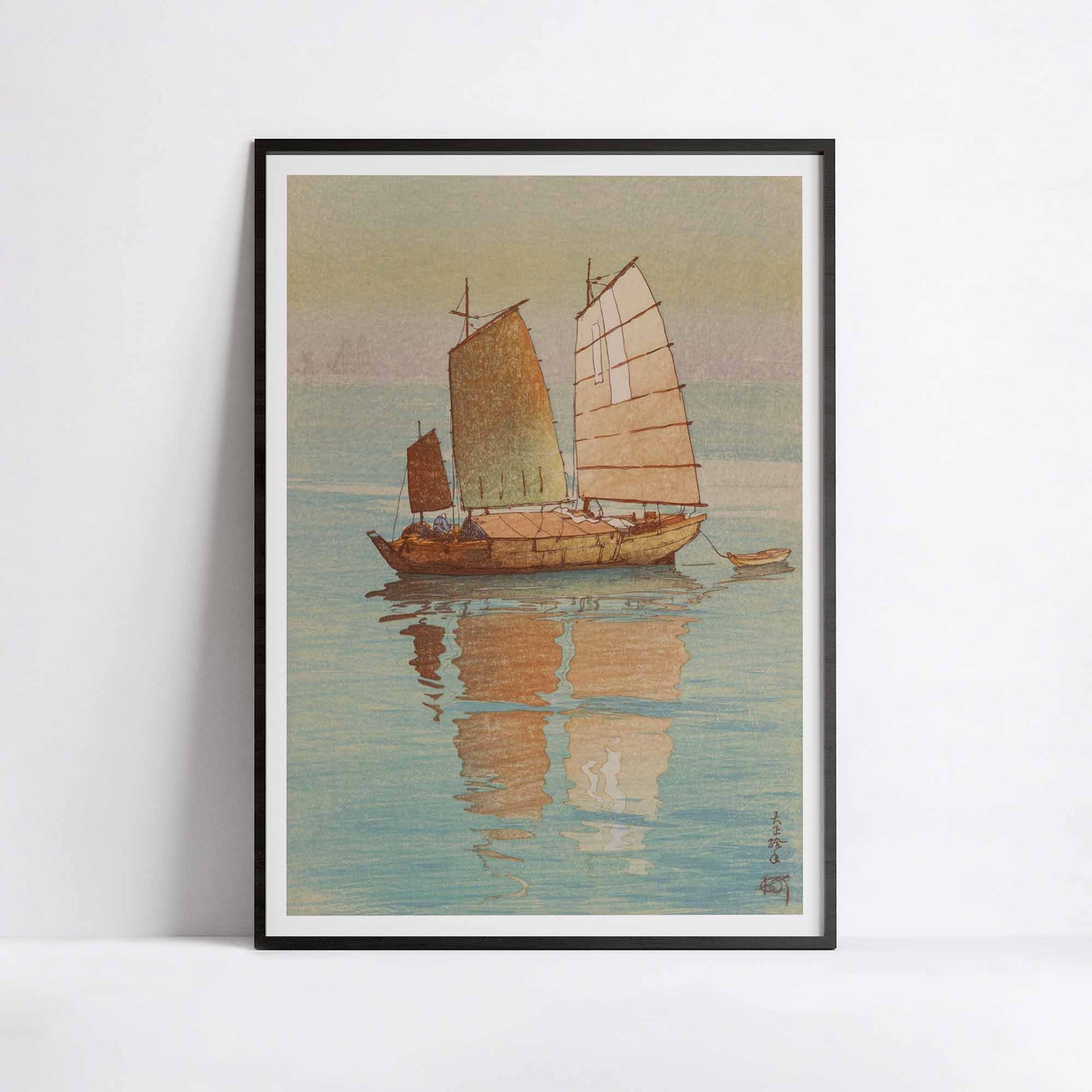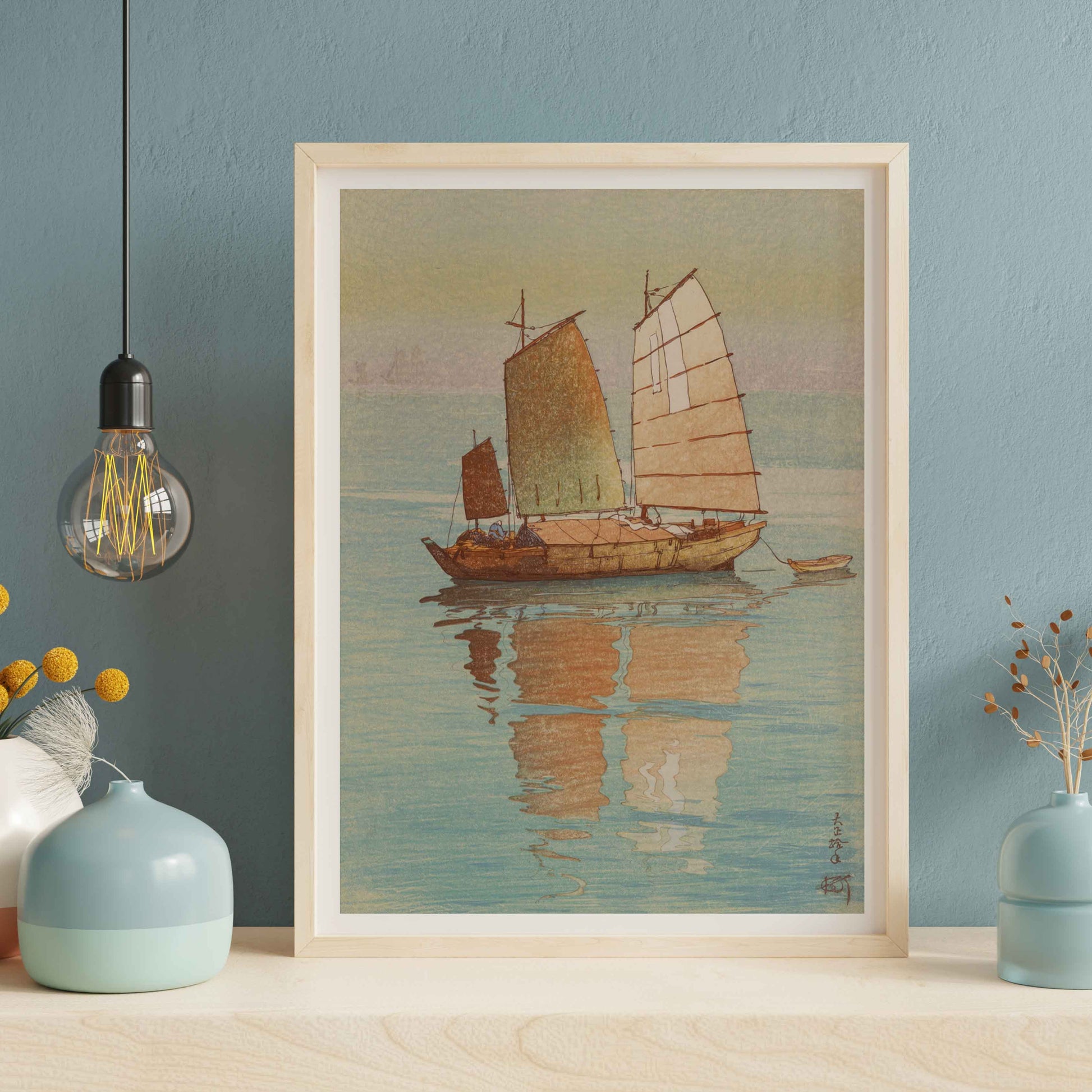 Une impression haute définition de Sailing Boat, une gravure sur bois japonaise de Yoshida Hiroshi
