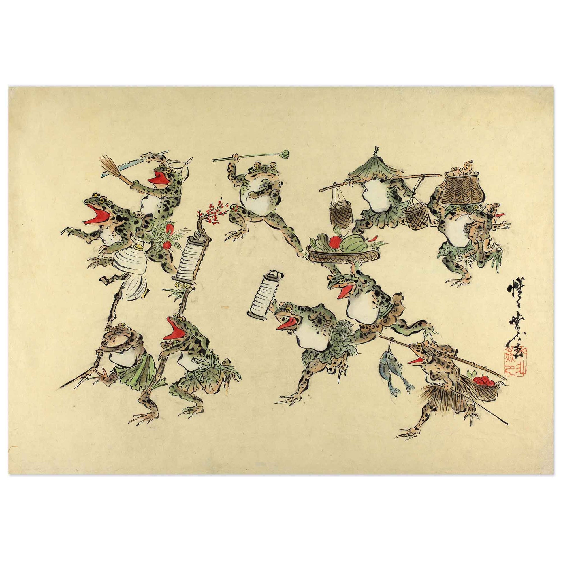 Cette reproduction fidèle est imprimée sur papier d’archive de qualité musée, avec des marges blanches raffinées pour un rendu équilibré et élégant. Parfaite pour les amateurs de grenouilles, d’estampes japonaises et d’illustrations pleines de fantaisie.