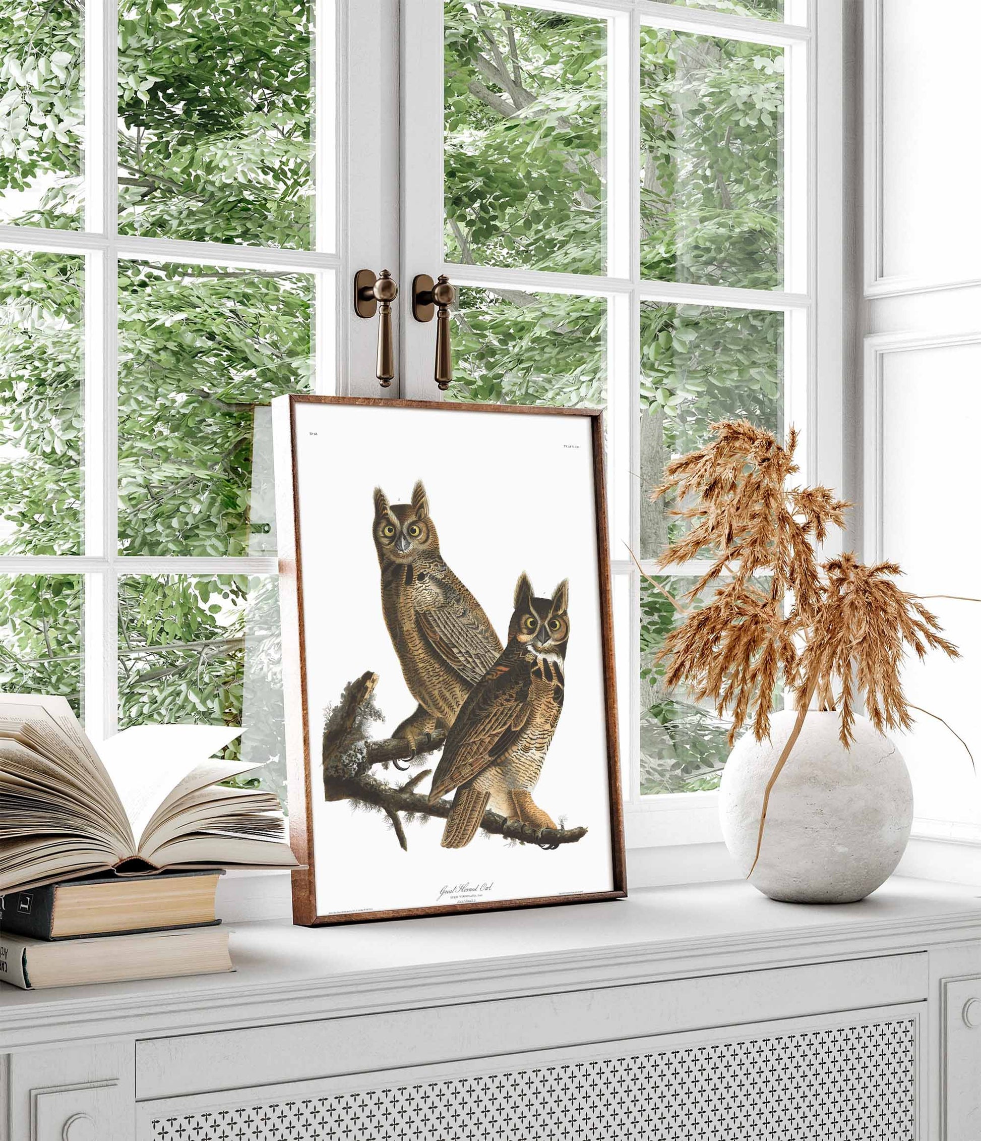Une impression haute définition du Grand-duc d'Amérique, tirée de The Birds of America d'Audubon.