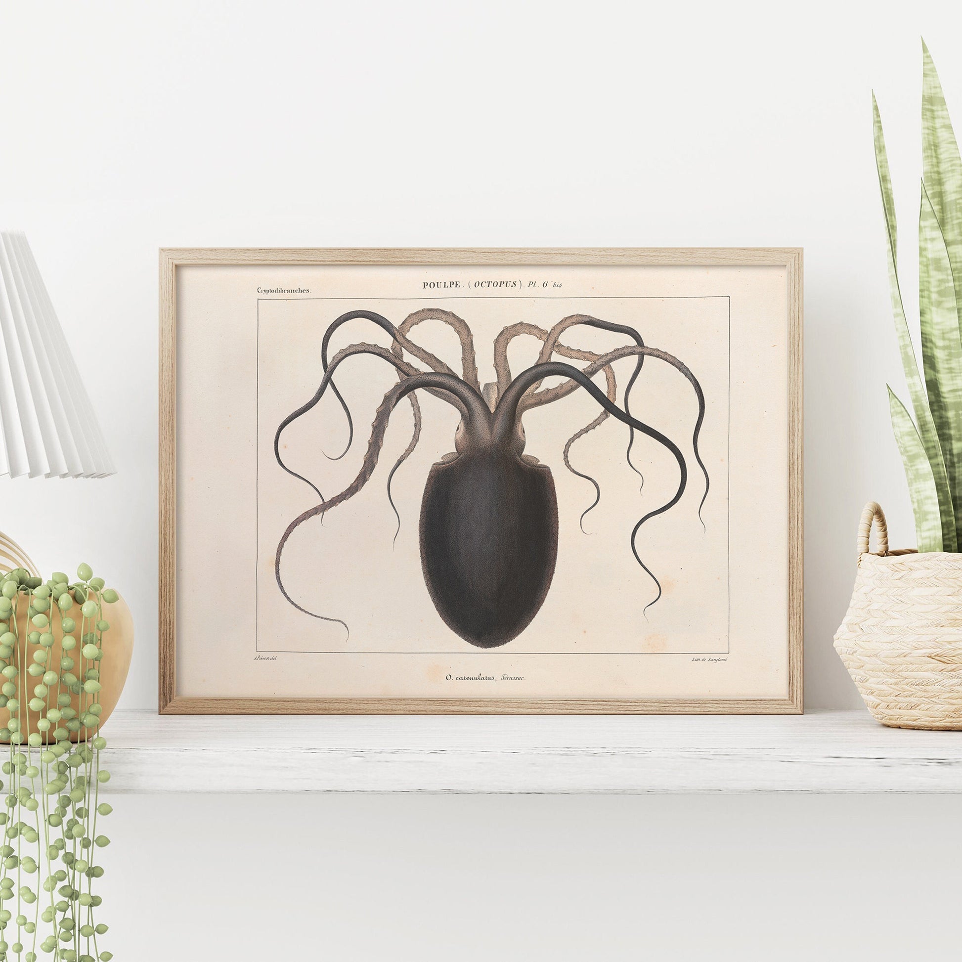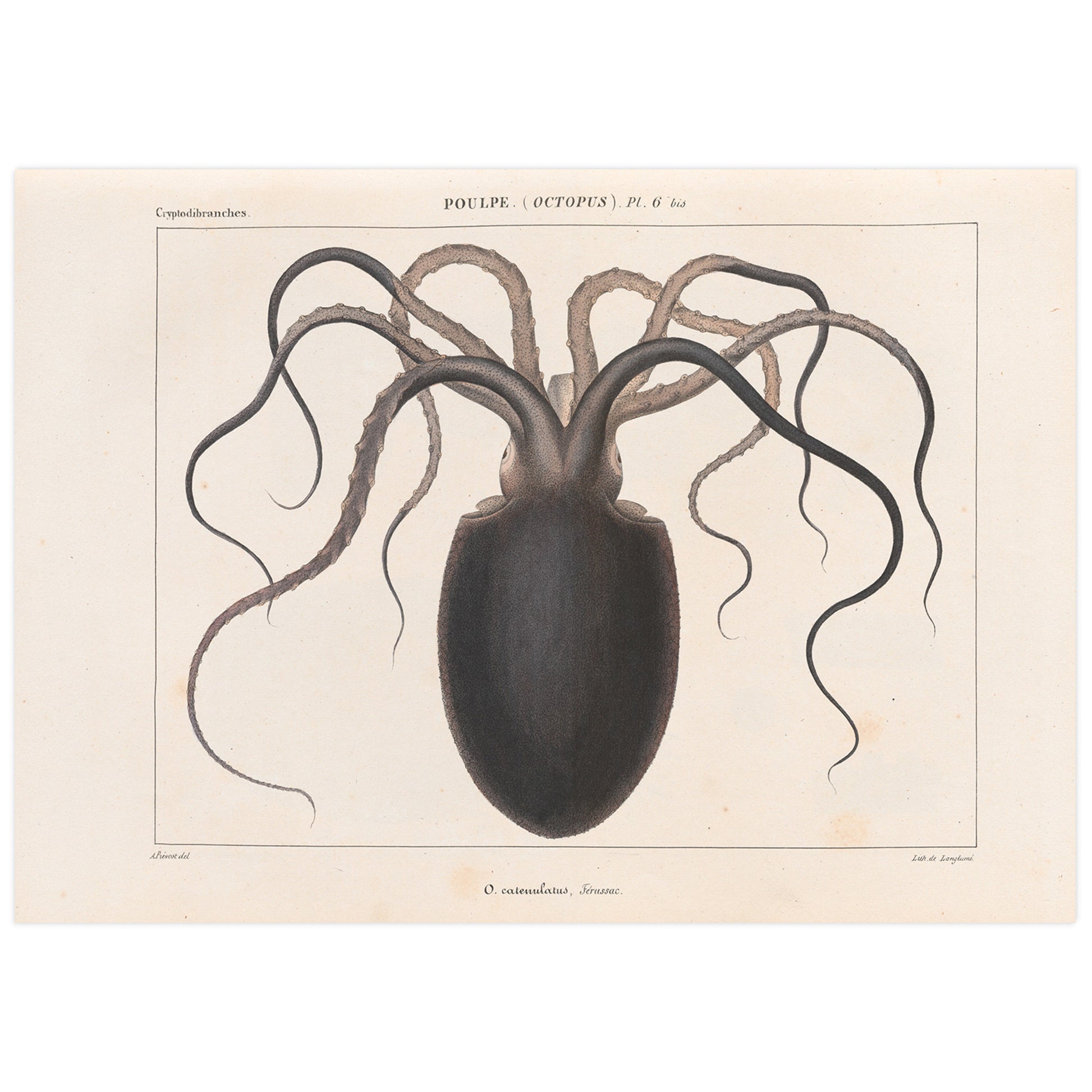 Une impression haute définition d'une illustration vintage d'un livre français publié en 1835 : "Histoire naturelle générale et particulière des céphalopodes acétabulifères vivants"