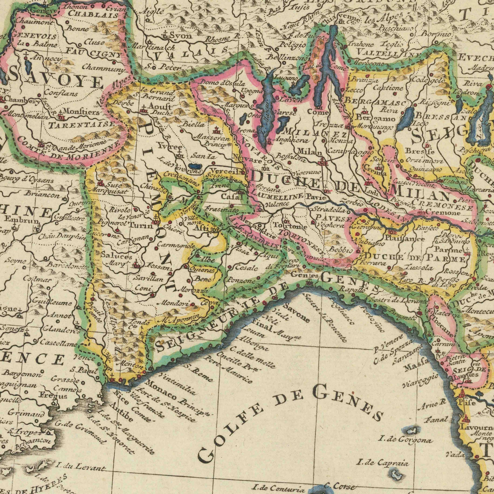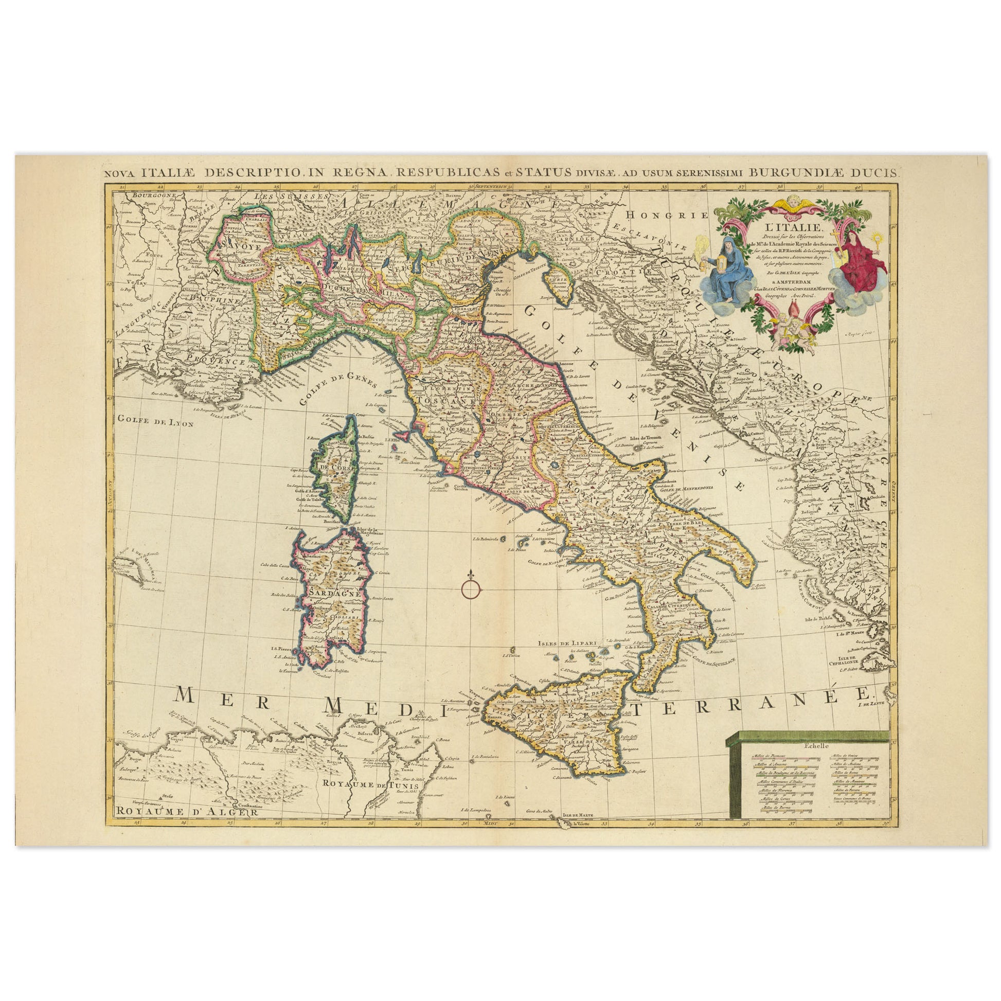 Carte détaillée de l'Italie, éditée par Covens & Mortier à Amsterdam.