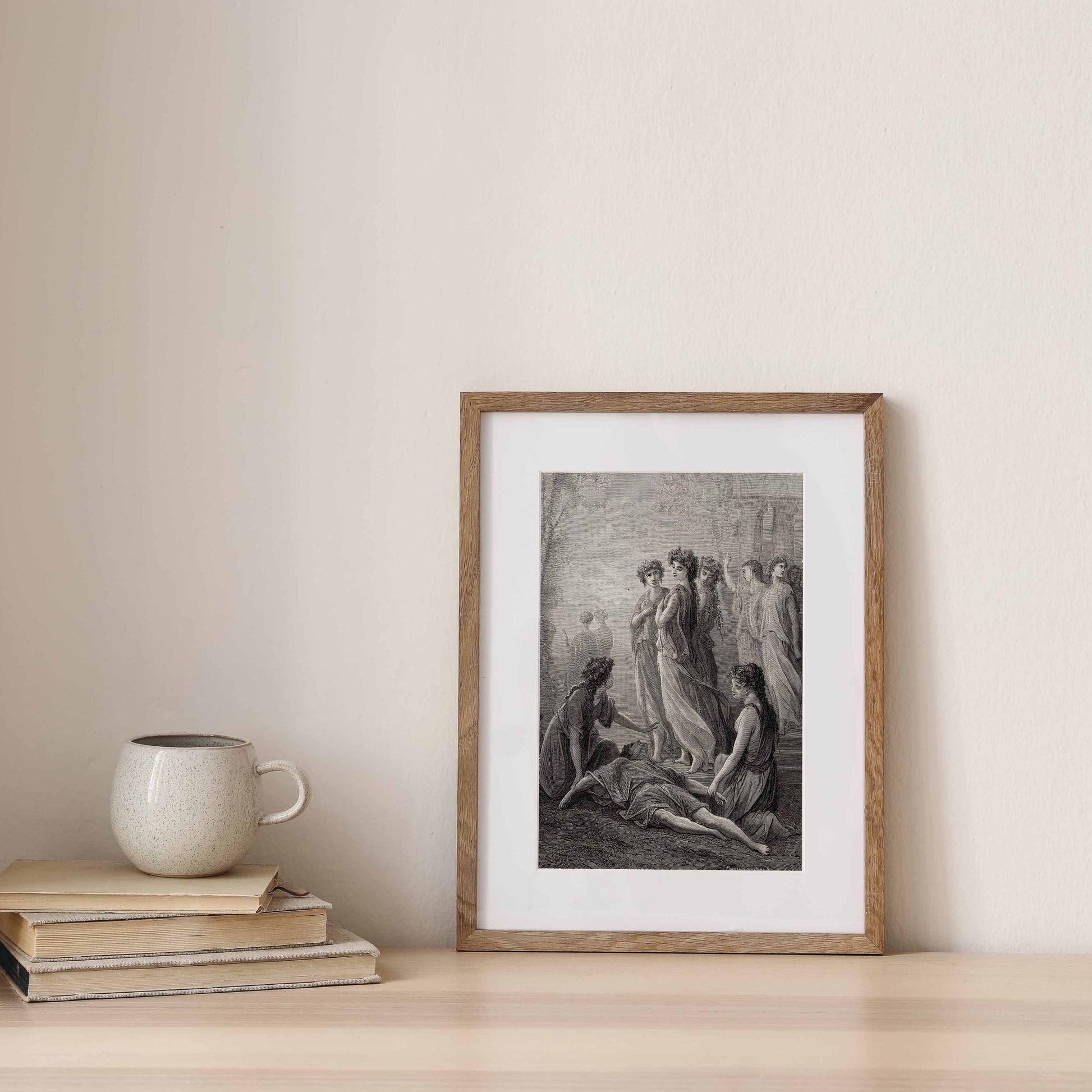 Doré met en valeur toute la puissance dramatique et la sensibilité de cette scène oubliée, mêlant gravure classique et émotion pure. Un choix parfait pour les amateurs d'art littéraire, de romantisme et de gravures anciennes.