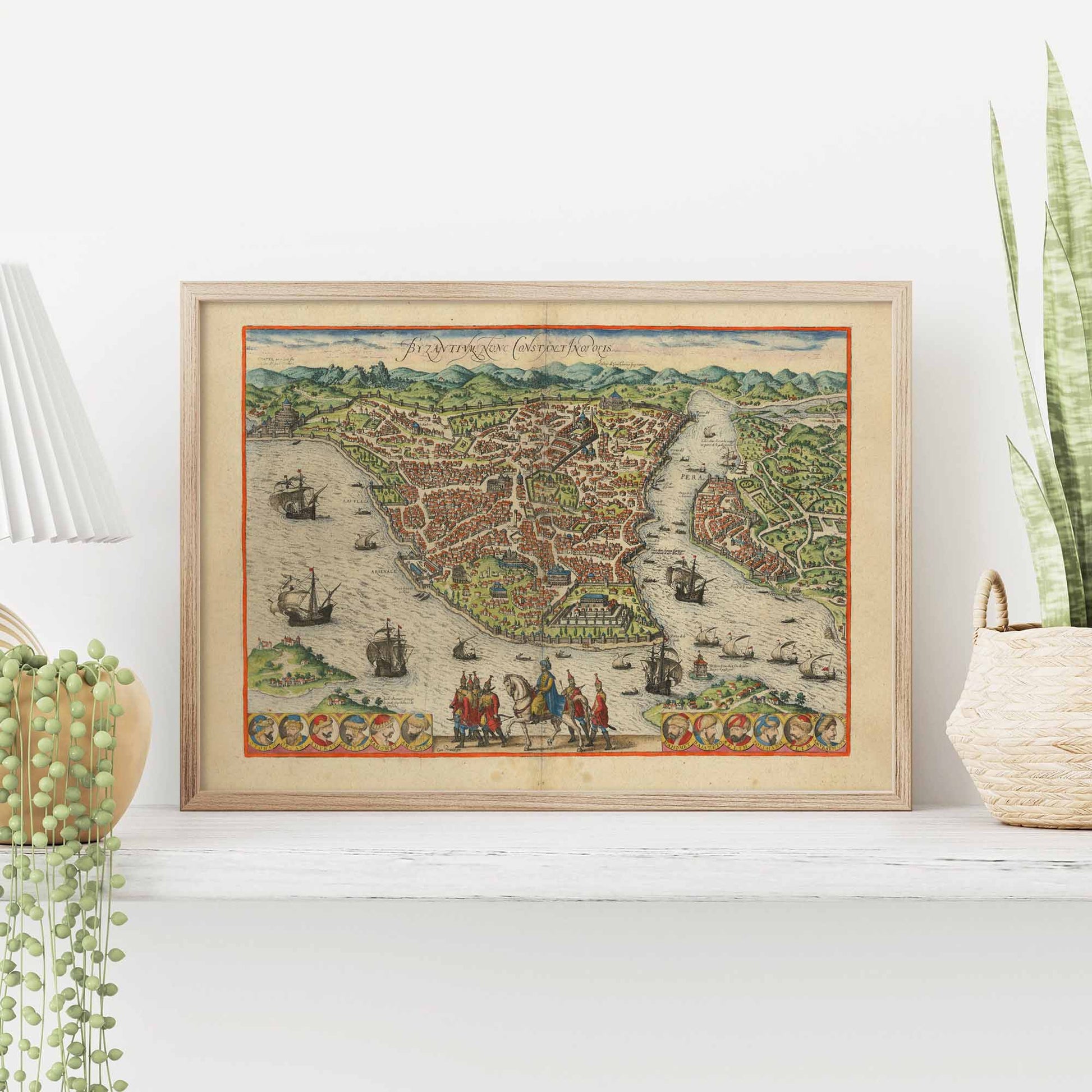 Reproduction de la carte historique d'Istanbul (Braun & Hogenberg, 1572) – Une vue panoramique époustouflante