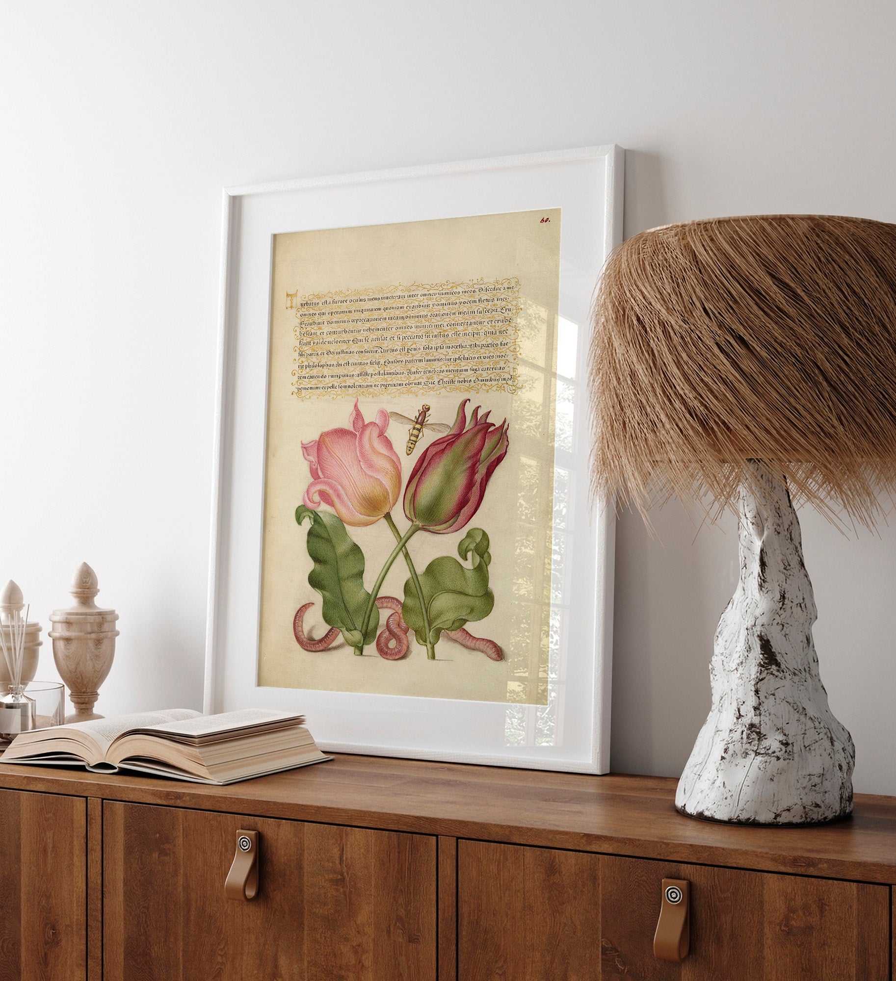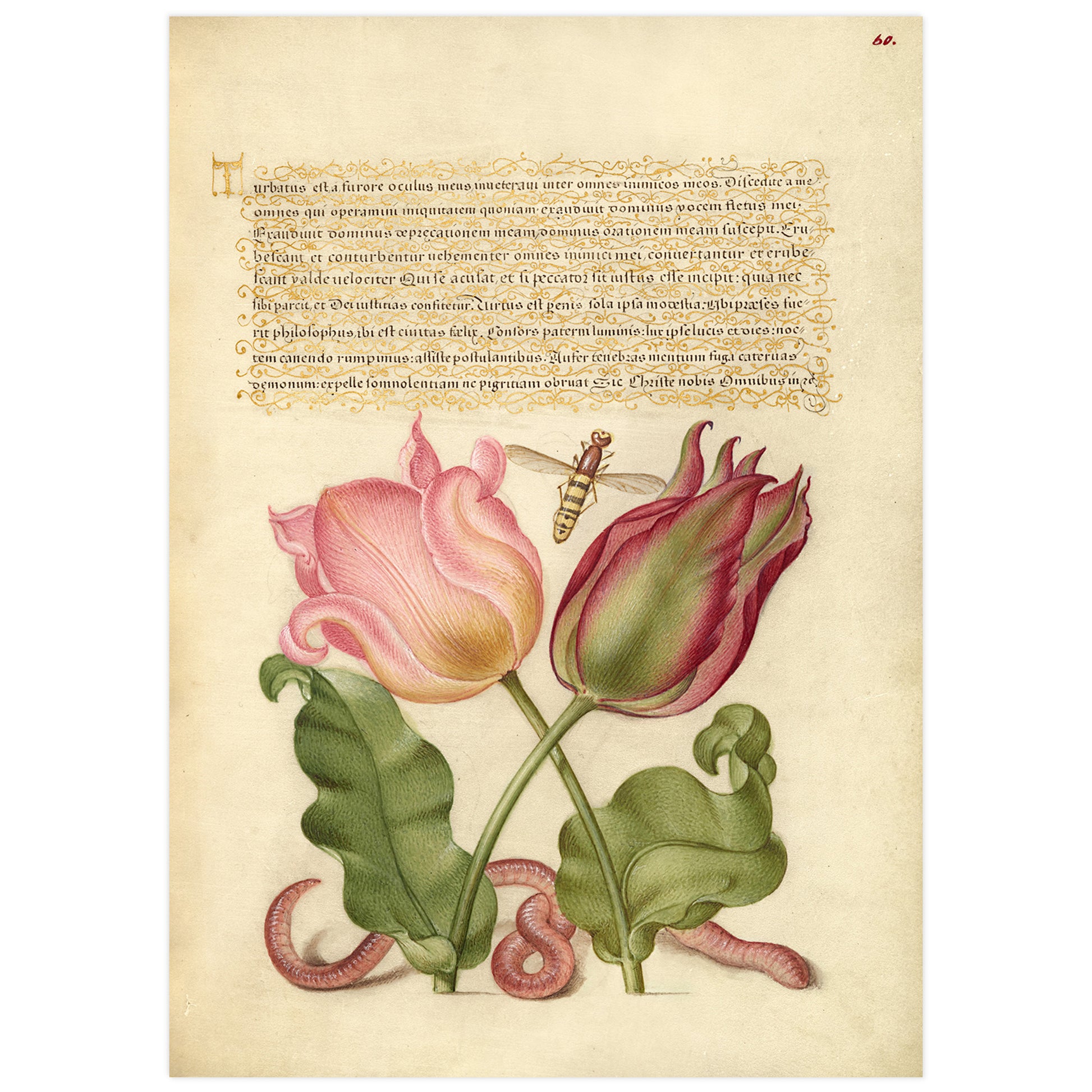 Reproduction haute résolution d'une page du Model Book of Calligraphy de Georg Bocskay, publié à Vienne en 1561, enrichi plus tard de dessins de Joris Hoefnagel.