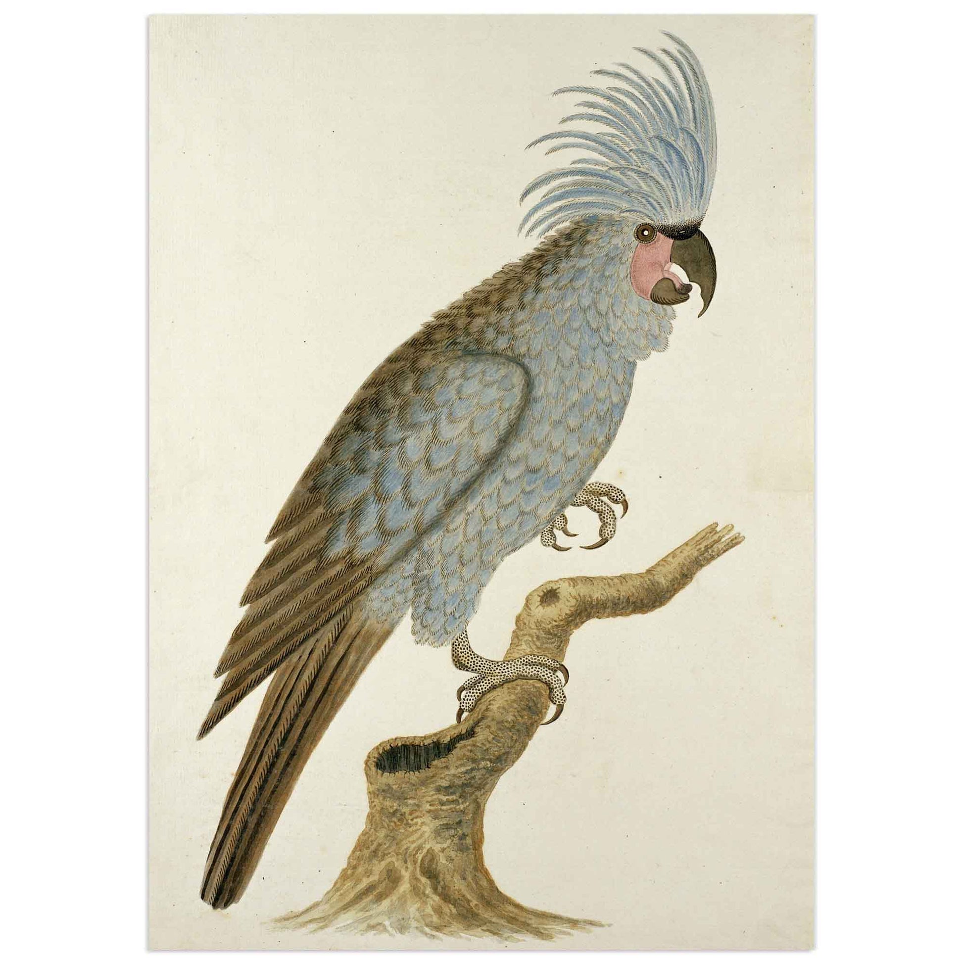 "Palm Cockatoo" by Jacob Robert Gordon is a detailed and elegant illustration from the 18th century, showcasing the striking appearance of this unique bird species. The artwork captures the Palm Cockatoo perched on a branch, with its signature crest of feathers and sharp beak rendered with meticulous precision. The bird's plumage is depicted in subtle shades of grey and black, highlighting the delicate texture of its feathers. Gordon's work is a beautiful example of early ornithological art, combining scientific accuracy with artistic flair.