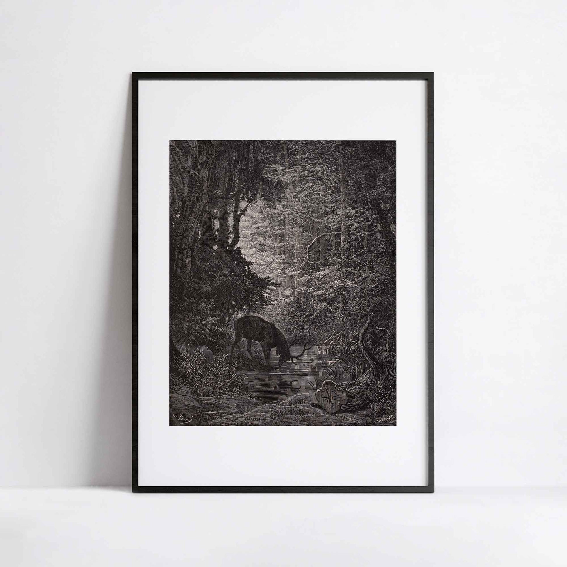 The Stag at the Pool – Gustave Doré Illustration for La Fontaine's Fables
