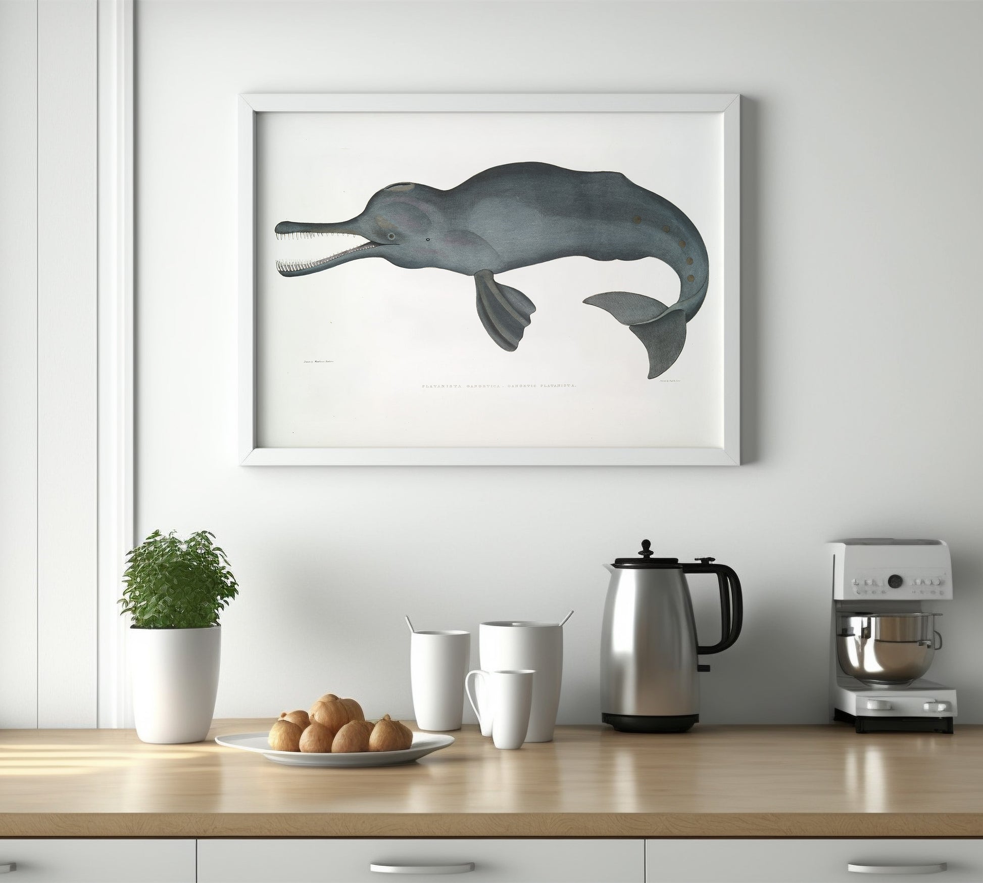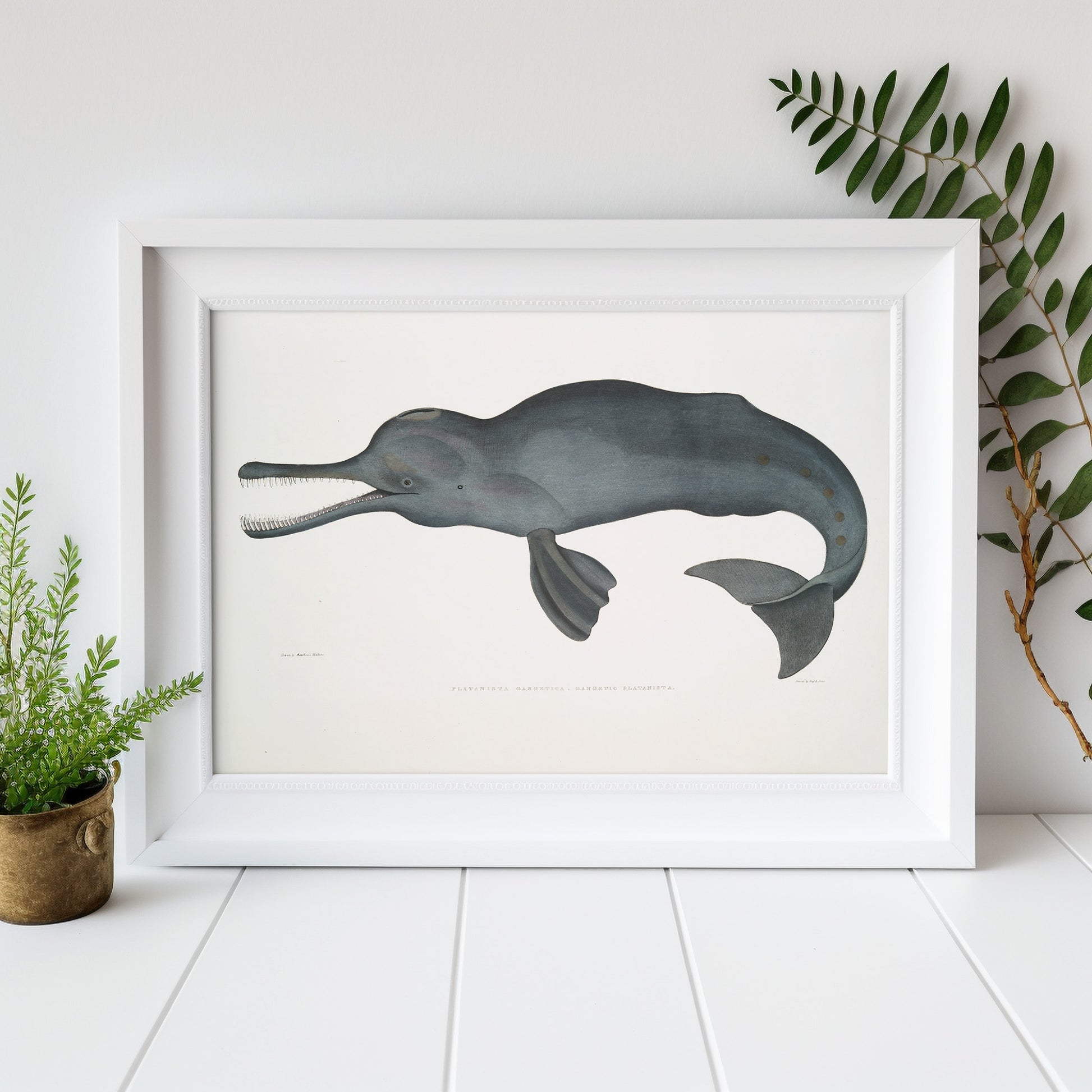 A high definition print of a South Asian river dolphin (platanista) illustration from the book "Illustrations of Indian Zoology" published in 1830 by John Edward Gray (1800-1875).